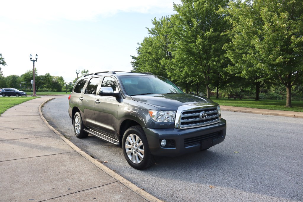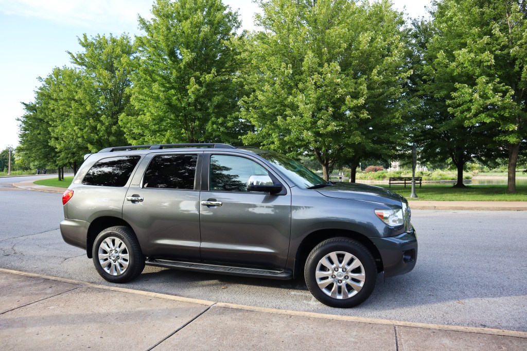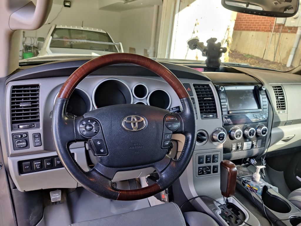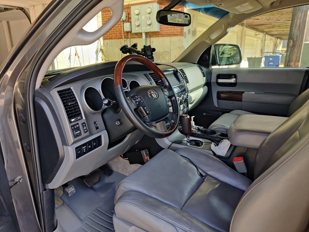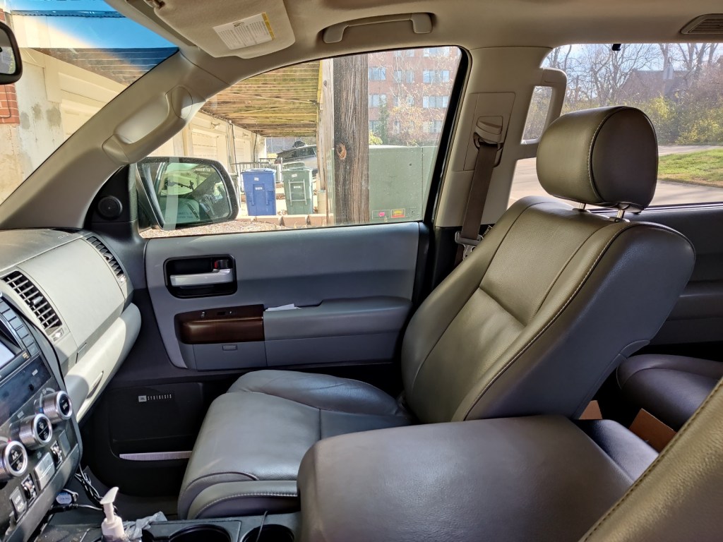 September, 2020: With priorities and needs changing, we decided that we no longer needed the Golf and that a large family & tow SUV would better suit our needs. We traded in the Golf for this car – a 2011 Toyota Sequoia. Our new-to-us 2011 Toyota Sequoia is a Platinum trim, the highest trim level. It came standard with heated & cooled seats, heated captains chairs for the second row, DVD player, sunroof & navigation, and radar cruise control. In particular, I love the cooled front seats. Standard for the Platinum trim was the 5.7L V8, which also had a flex fuel version, which we got.