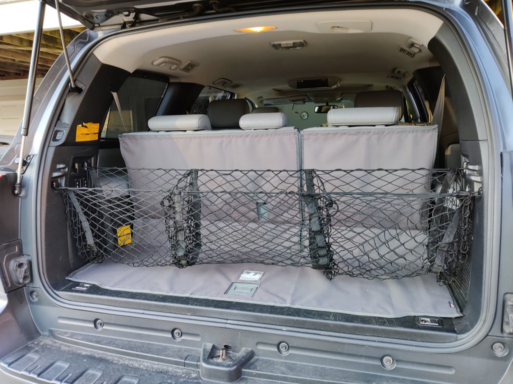 - Never really thought I needed one of these before, but on a slight angle it seems pretty easy for groceries to fall out of the Sequoia. The net either keeps them in place or I use it to put groceries in so they don’t slide around to begin with.