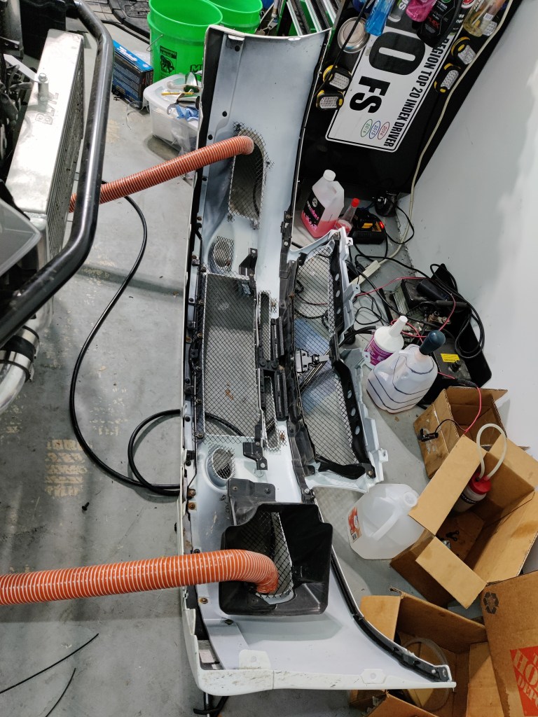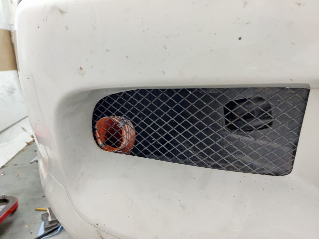 After that, I simply mounted the hosing directly onto the front bumper. I chose to forgo using any kind of inlet on these, as on the passenger’s side, this will steal a small amount of air from the oil cooler. I haven’t noticed any difference in oil temps post-install, however. I also opted to keep the brake air guides on the car. They had to be trimmed a bit to accommodate the ducts, but they should still be directing a small amount of air in that direction.