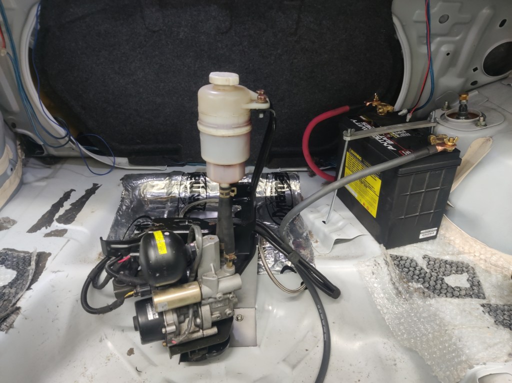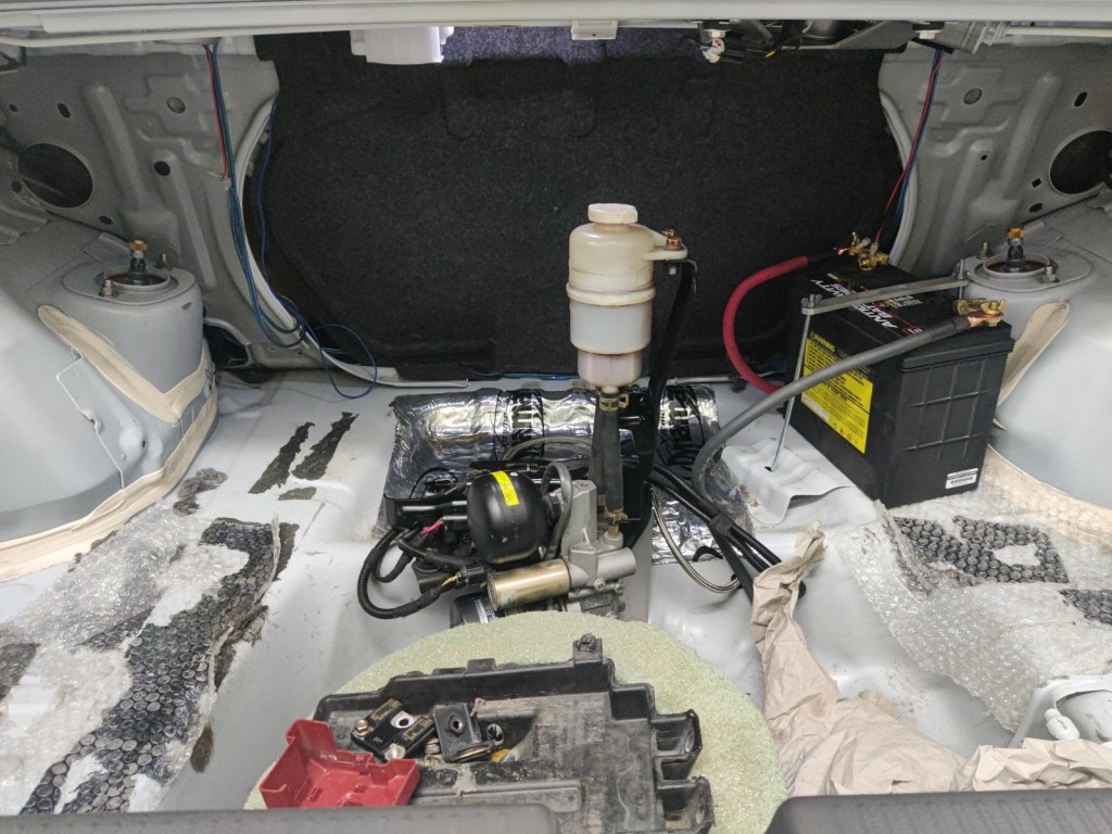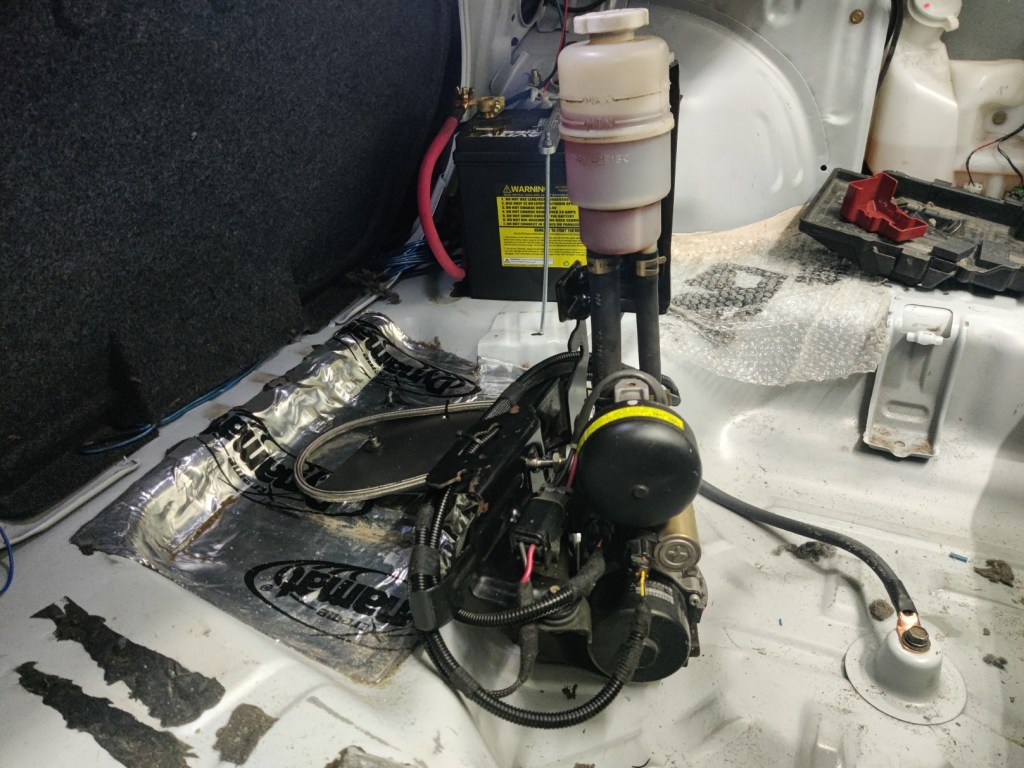 Next up will be to potentially cover these bits up a better, and modify the carpet and plywood to accommodate the ACD pump and battery. I’d still like to use some of the side panel covers – the left side is totally unhindered, but the right side will need to be modified. This will be the first of a number of mods made this season to improve the car’s balance.