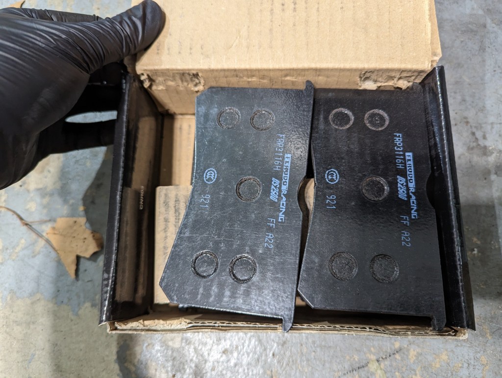 Given my awful experience with the Ferodo 3.12 pads, I opted for a street set for my dailying and autox (and maybe even a track day or two). These are the Ferodo DS2500s, which I have run before in the past in my Brembos. Hoping they will stop much quicker in the cold, and looking forward to trying these out on the street and in autox!