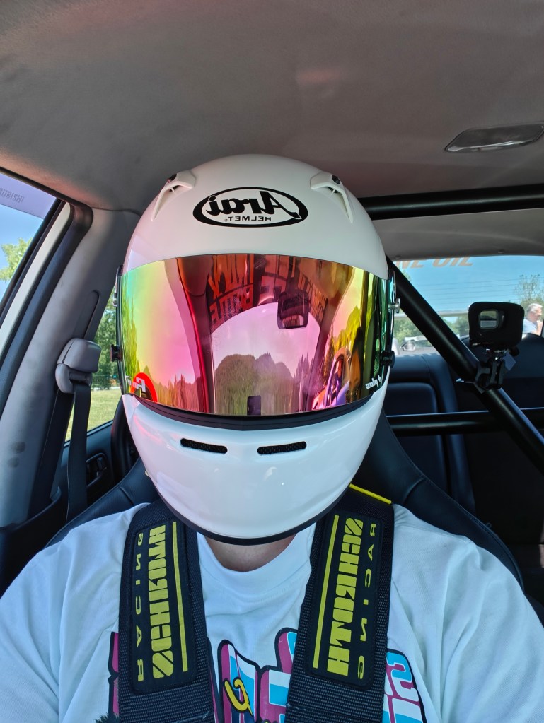 Haven’t made a post just for my helmet, but I really love this one. It’s an Arai GP5W, which is actually on its way out of production. I have a connection in Japan snag me an SA2020 + pink/gold visor for about half of what it costs in the States. I had been shopping around for a bit – I’ve had the Pyrotect carbon fiber for quite some time and wanted to get something a little different, that I would be happy riding both on the motorcycle and in the cockpit. The GP5W is marketed as a “rally” helmet, but the key really is that the visor area/opening is so large that neither for riding nor racing in the car is my vision obstructed at all. I can’t feel any weight differential between this and the Pyrotect, and the materials inside the Arai are so much more premium and plush, and the helmet fits great on my head. I was a little worried, as Arais are known to be a little more oval than circular, but it feels great and happy for the upgrade. I’ve still got the Pyrotect as backup, but as 2025 draws closer, I’m not sure how much longer the Pyrotect will be serviceable.