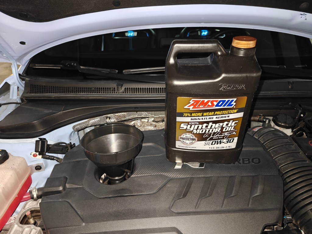 This is a how-to for the 2019-2022 (Gen 2) Hyundai Veloster N engine oil change. This is a very straightforward job, and I imagine it would be the same for non-N Velosters of this gen as well. My plan is to use Amsoil SSO 0W30 for the non racing season, from November – March, and to either use Amsoil ZROD 10W30, Valvoline VR1 Racing 10W30, or Red Line 30WT Racing Oil for the regular autox season/summer. I actually decided to go with Hyundai’s OEM oil filter. Given the strict performance requirements of the car, I decided this would be the best route for now, though the Purolator has one readily available, and I’d actually like to try the Fram Titanium 9688 for racing.