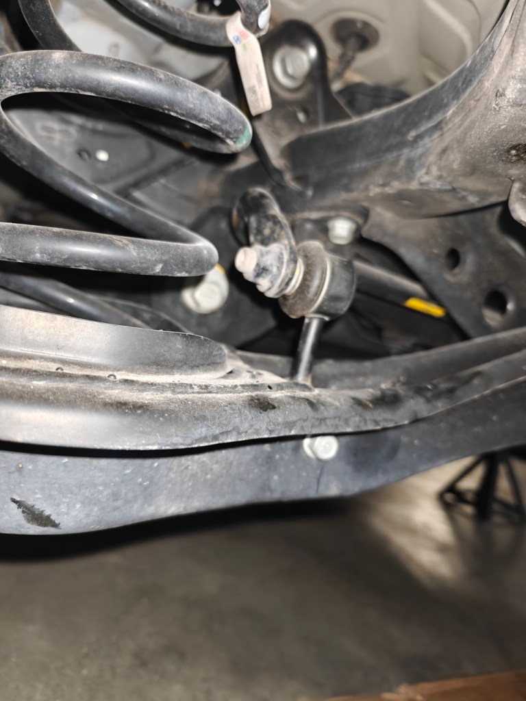 3. I loosened the 14mm bolts at the top, and then completely removed the 12mm bolts at the bottom to release the endlink from the control arm.