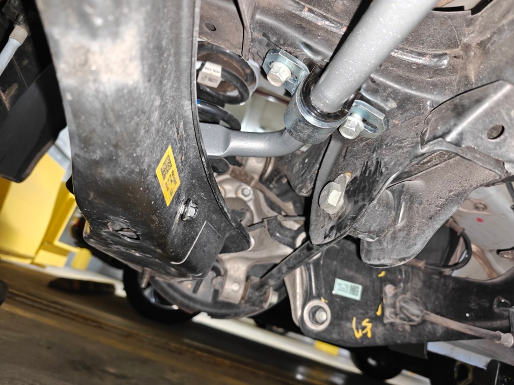 2. When you get under the car, you’ll see the sway bar is connected to the chassis by 14mm bolts via 2 brackets, and to the endlink, which is connected to the control arm.