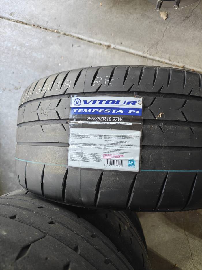 Finally, I’m running 265/35-18 Vitour P1s. I asked SPS whether I should run the P1s in 265 or RE71Rs in 285, and he actually said the former. I was surprised, but for track days this tire copes very well with the heat – needs it, actually, as evidenced by my Veloster N. I agreed anyway, as I didn’t want to push things too much on trying this setup for the first time. The tires may be a tiny bit stretched on this setup, but barely if at all. I’m going to try to scrub them in or get a heat cycle before the next event, which is going to be a trackday…
